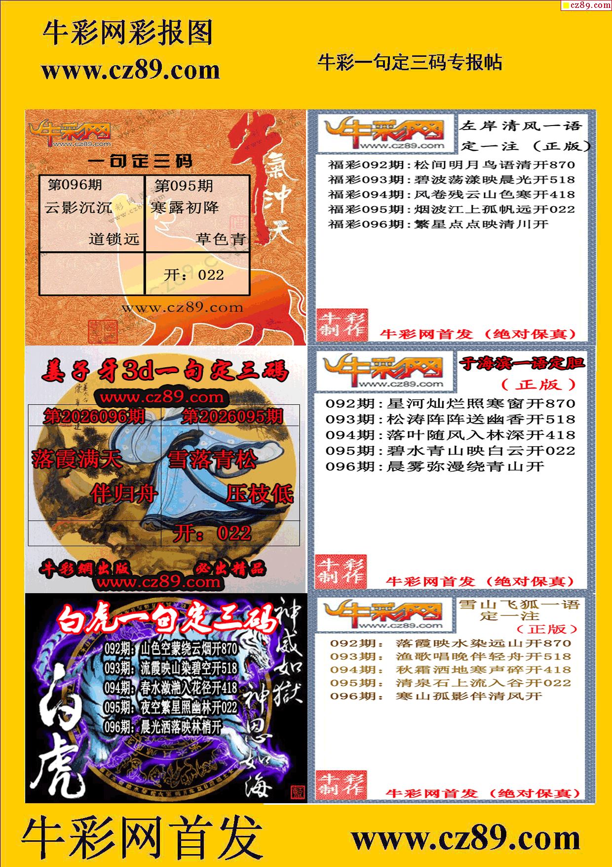 首页 > 福彩3D图谜 > 2026096期牛彩专家一句定三码彩报